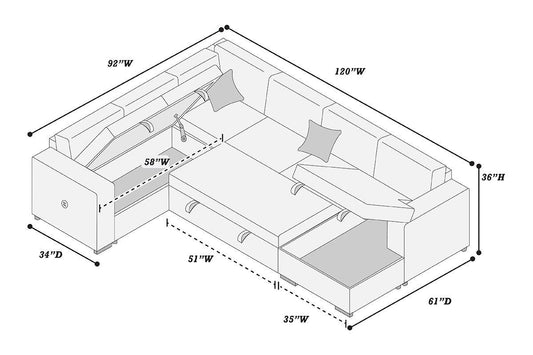 Sage Corduroy Chaise Sectional With Charger and Storage Ottoman