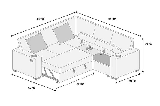 Beige Corduroy Chaise Sectional With Charger and Storage Ottoman