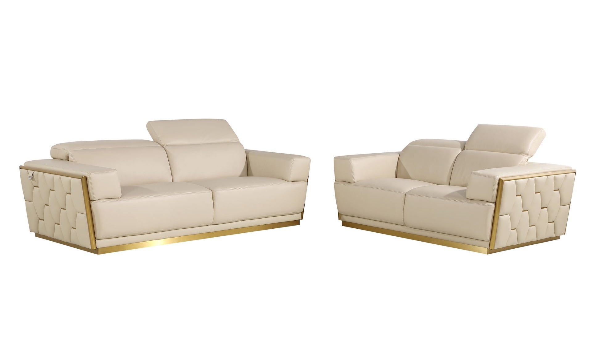 1111 - Top Grain Italian Leather Sofa And Loveseat - Beige