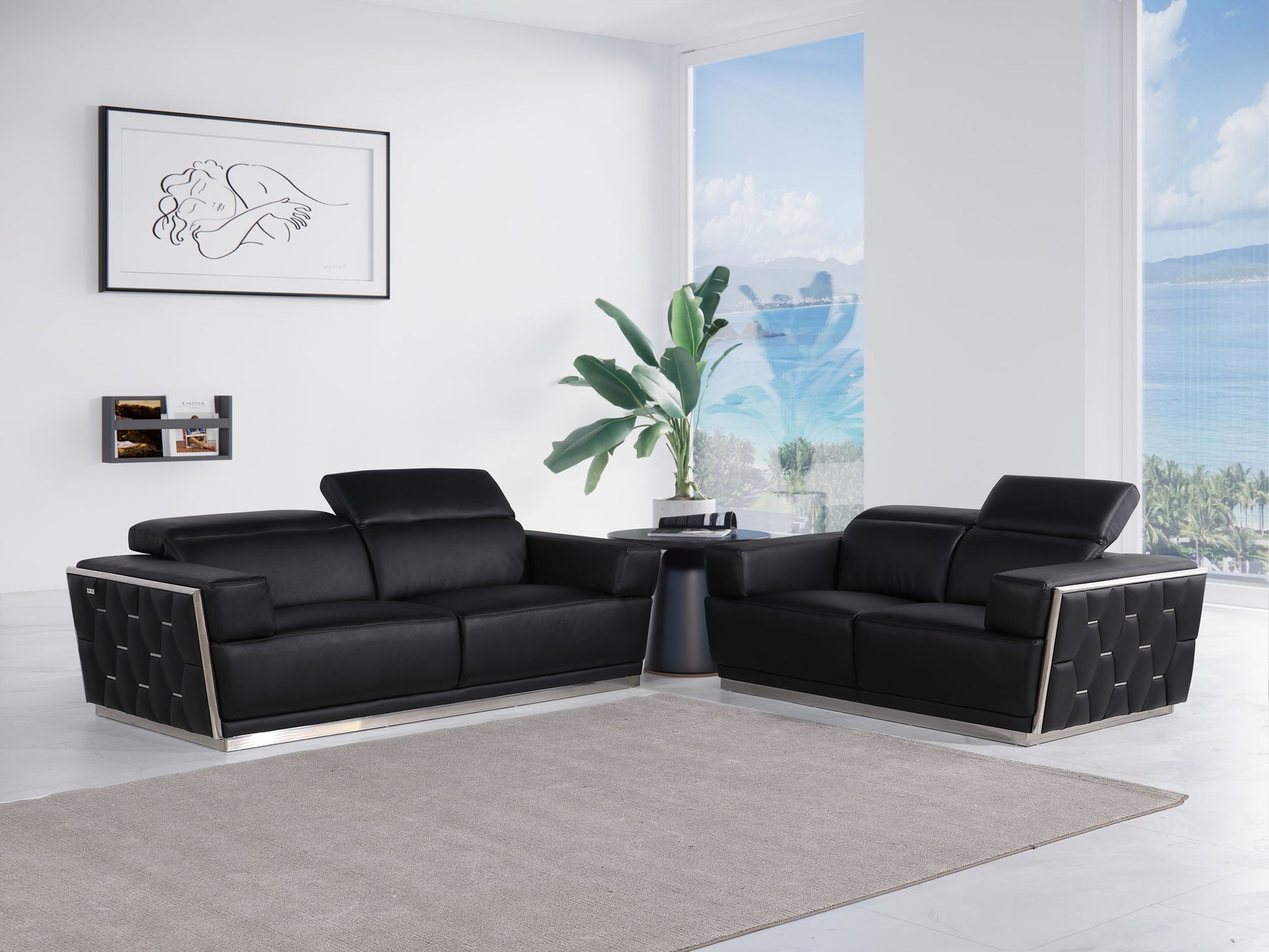 1111 - Top Grain Italian Leather Sofa And Loveseat - Black