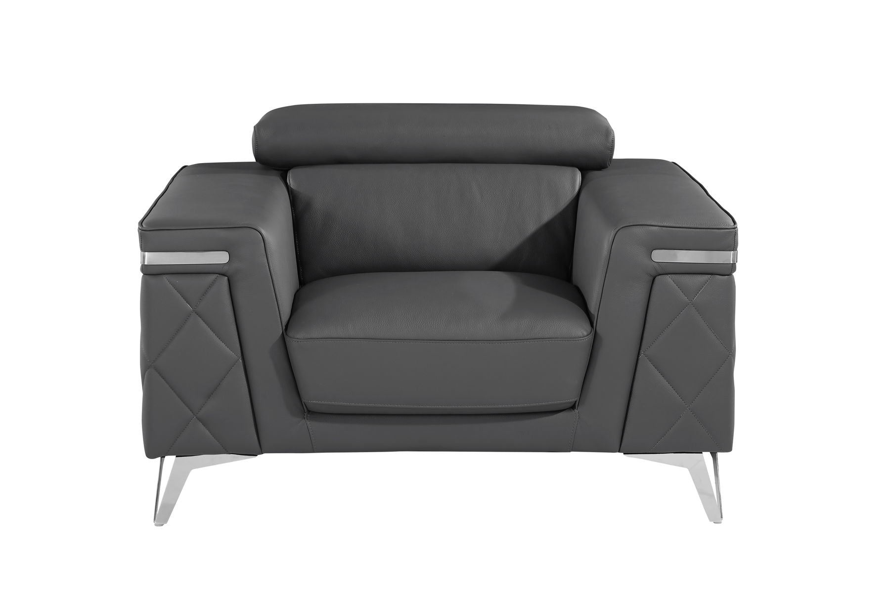 1140 - Top Grain Italian Leather 3 Piece Set - Dark Grey