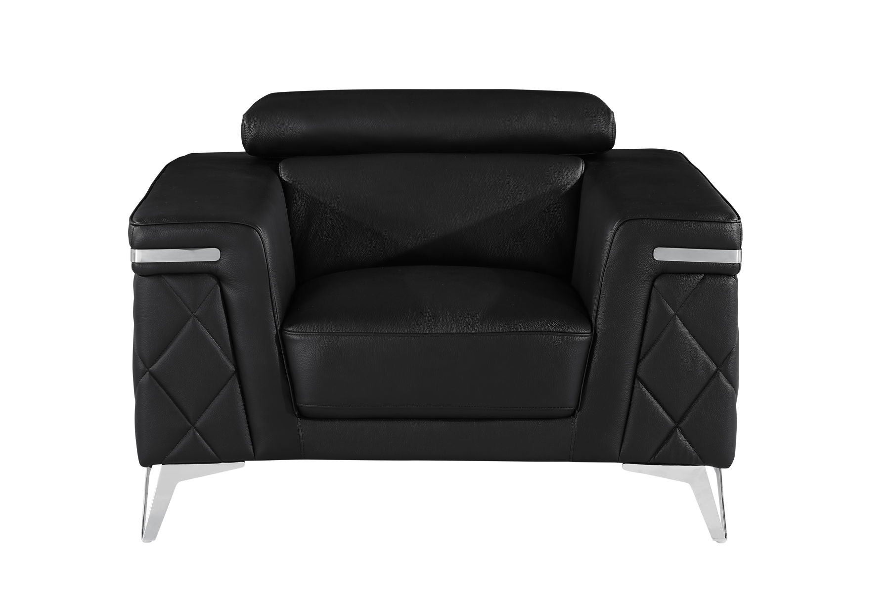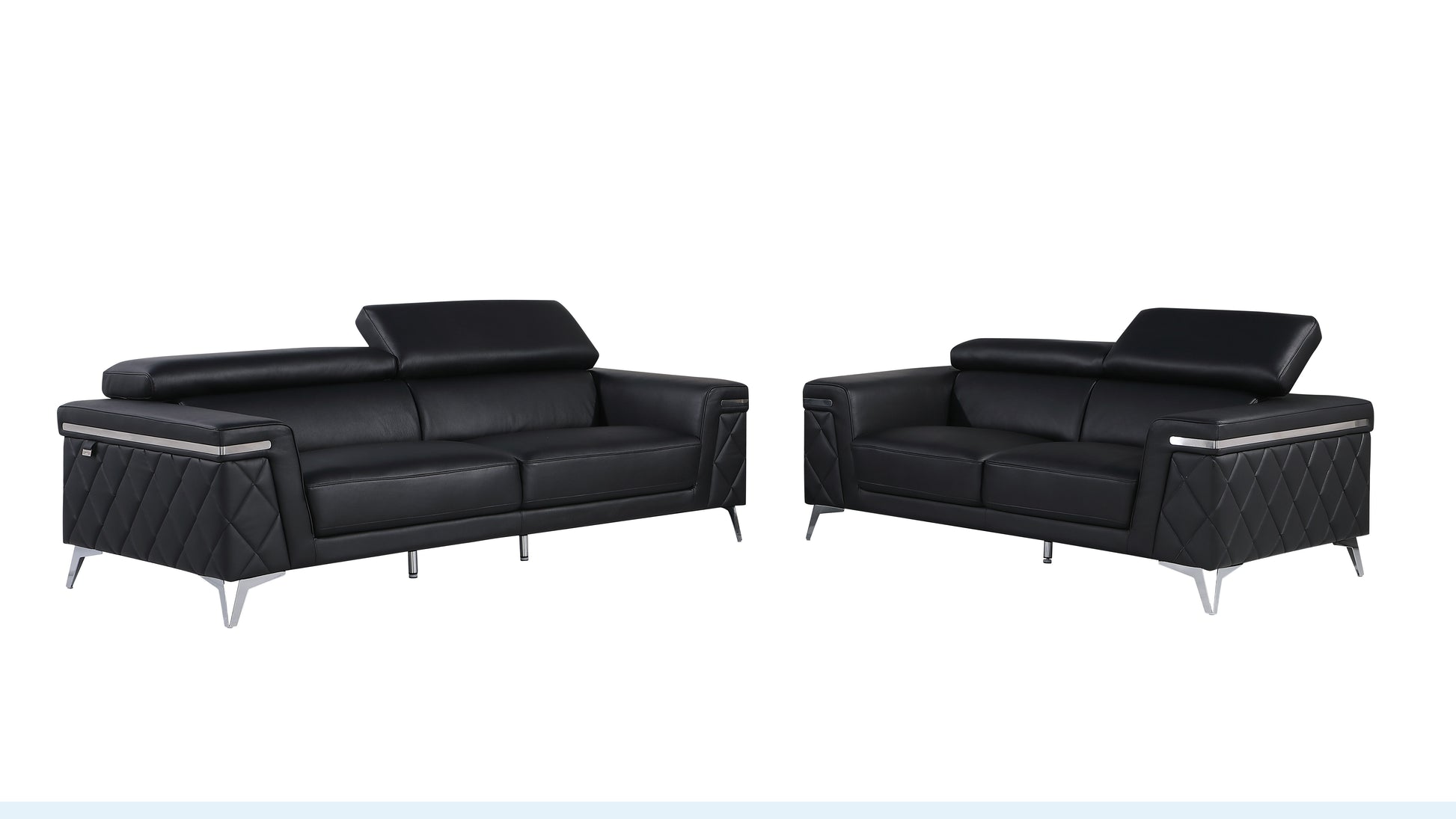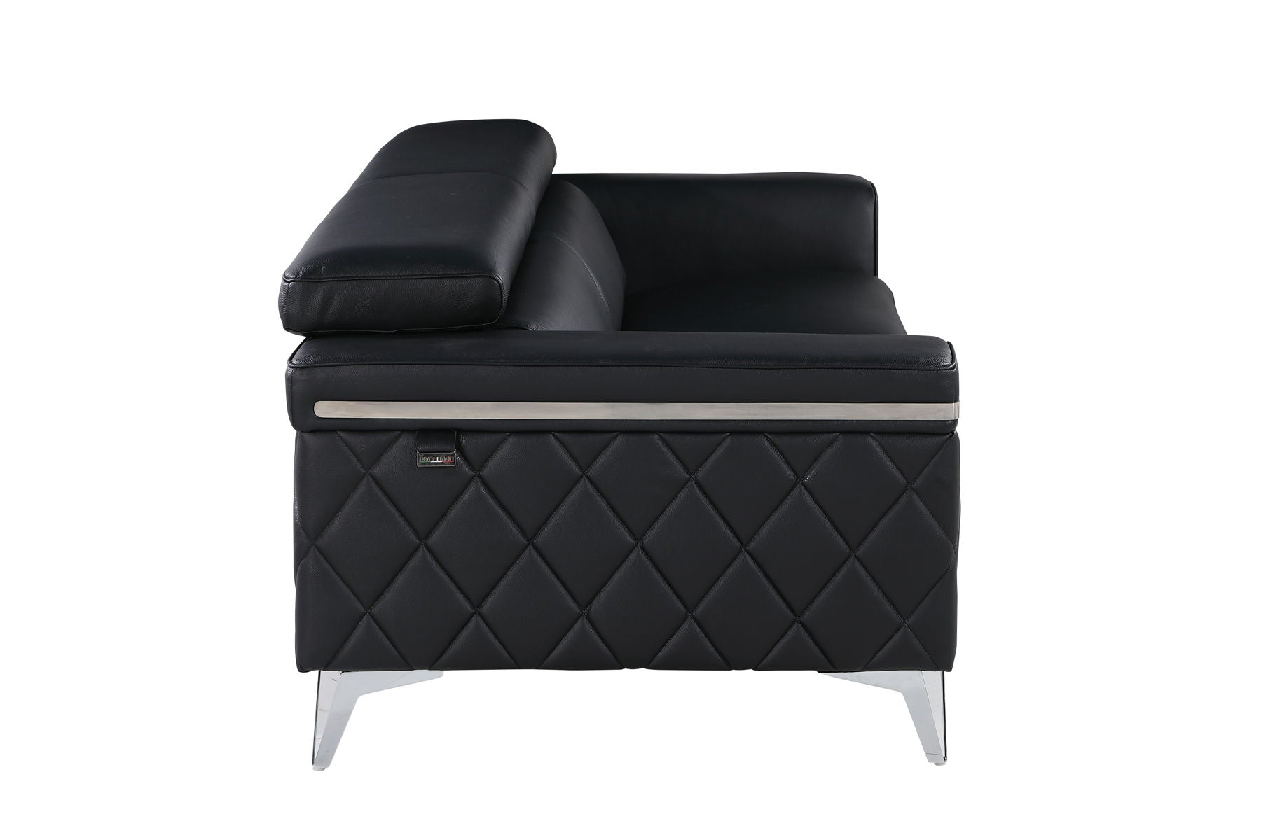 1140 - Top Grain Italian Leather Living Room Set - Black