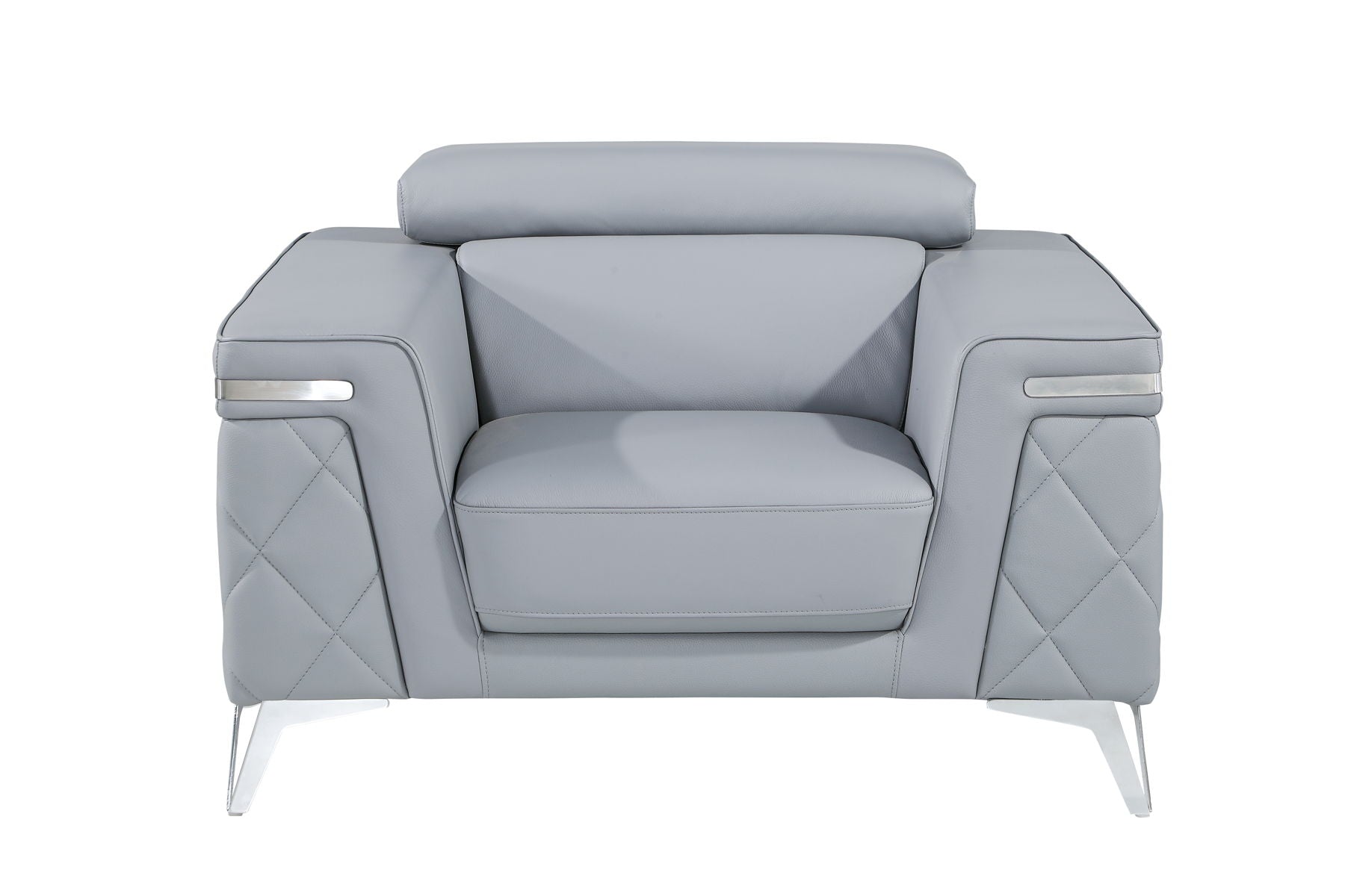 Exuding stylish form and comfort, this sofa set is wide for comfortable seating and inspired by Italian design. The gorgeous, stainless steel chrome legs and trim add a beautiful contrast to the top-grain Italian leather upholstery. Additional support is provided with adjustable headrests for neck comfort that uses a state-of-the-art Japanese ratchet system with multiple adjustable positions. The cushions easily seat 5 people in optimal comfort, with the width of the armrests also offering a functional purpose as a perfect place for resting your drink or a book. The selection of top-grain Italian leather for the upholstering and solid Brazilian wood for the sofa frame is done with the utmost respect for the finest raw materials. Italy is world-renowned for high-quality leather. You can smell and feel and see its high quality in every sofa set.