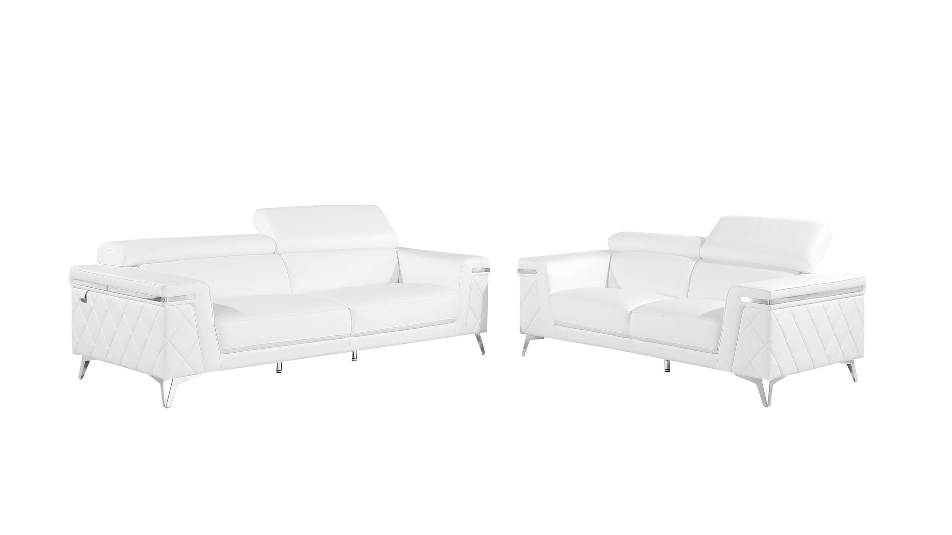 1140 - Top Grain Italian Leather Sofa And Loveseat - White