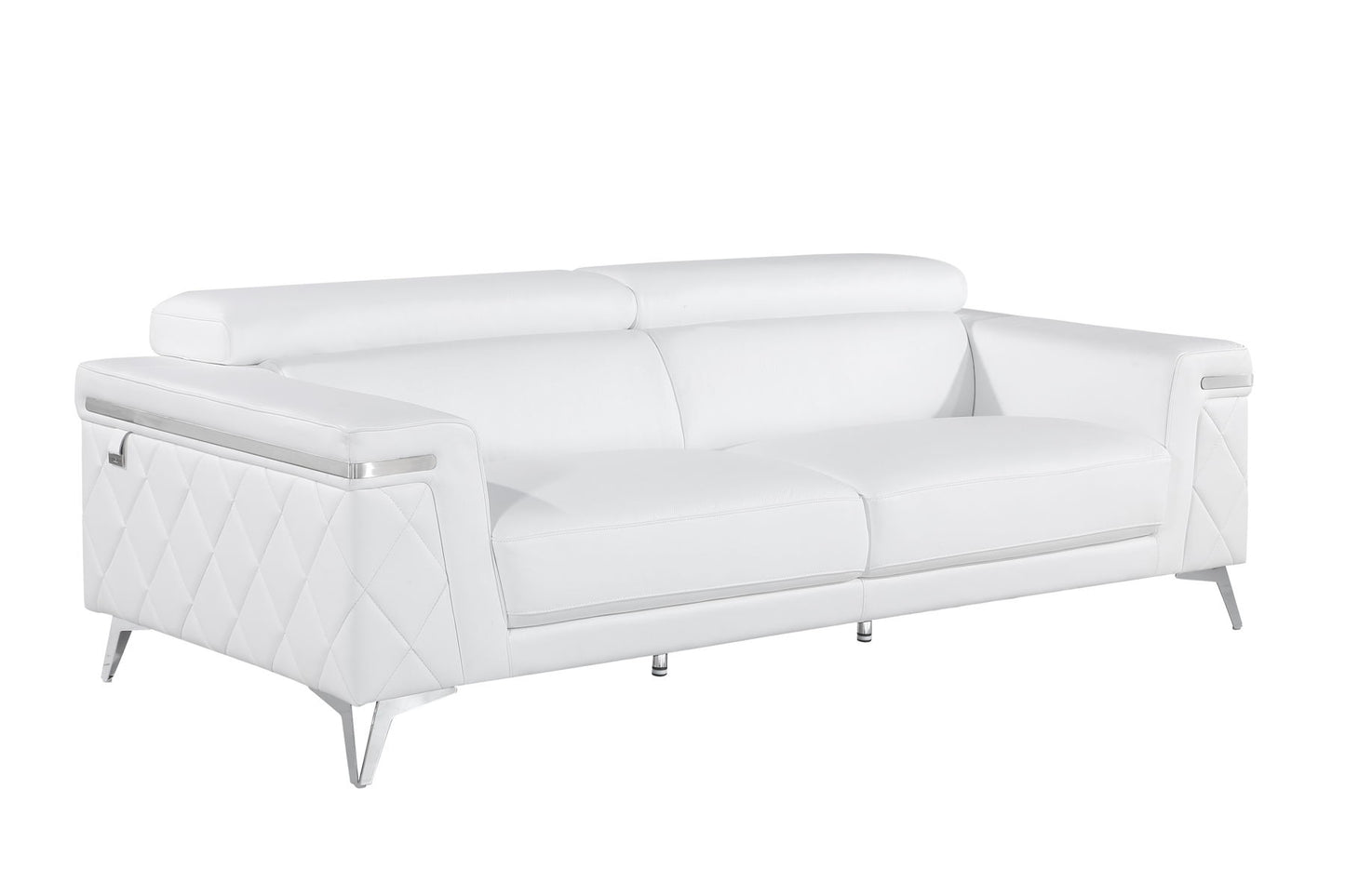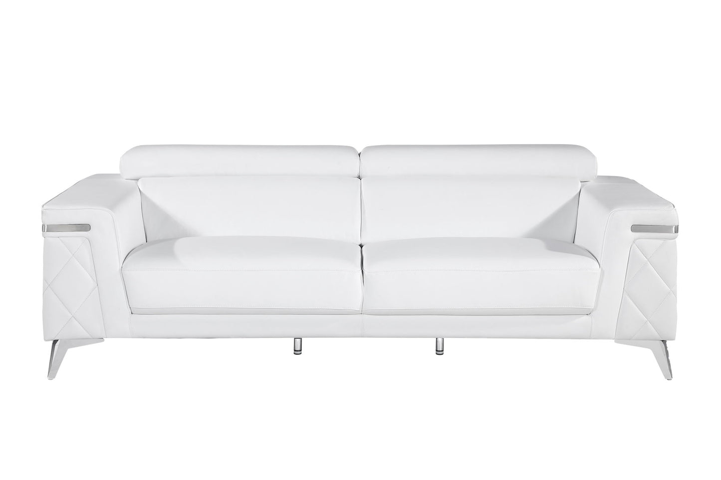 Exuding stylish form and comfort, this sofa is a wide width for comfortable seating and is inspired by Italian design. The gorgeous, stainless steel chrome legs and trim add a beautiful contrast to the top grain Italian leather upholstery. Additional support is provided with adjustable headrests for neck comfort that uses a state-of-the-art Japanese ratchet system with multiple adjustable positions. The cushions easily seat 3 people in optimal comfort, with the width of the armrests also offering a functional purpose as a perfect place for resting your drink or a book. The selection of top-grain Italian leather for the upholstering and solid Brazilian wood for the sofa frame is done with the utmost respect for the finest raw materials. Italy is world-renowned for high-quality leather. You can smell, feel, and see its high quality in every sofa set.
