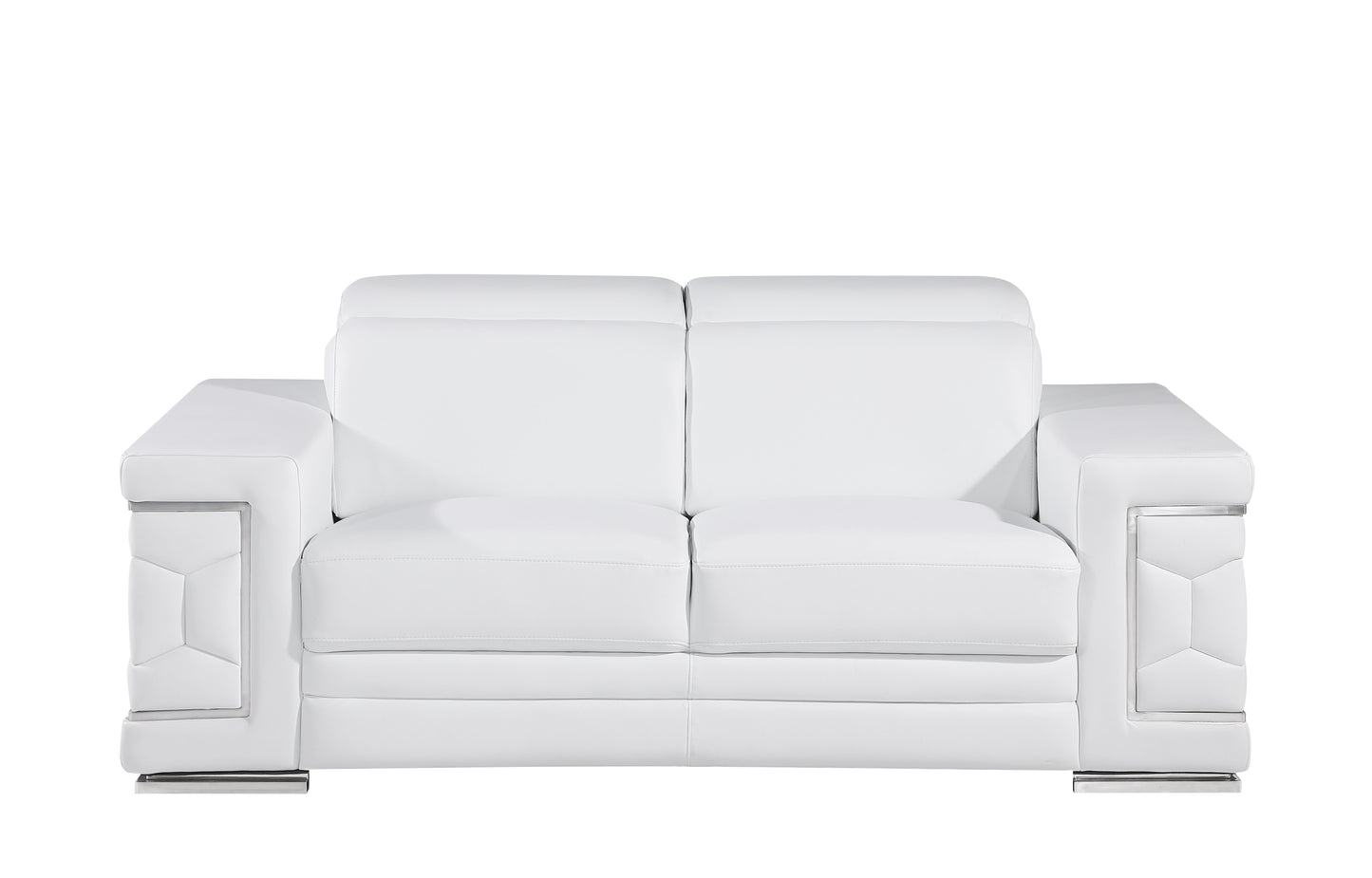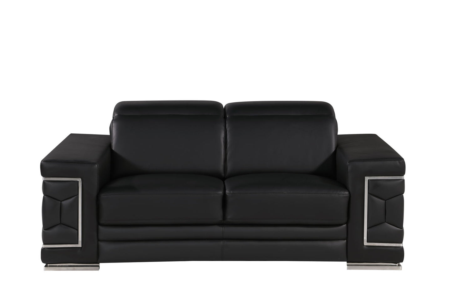 Exuding stylish form and comfort, this sofa set is inspired by modern and Italian design. The gorgeous, stainless steel chrome legs and trim add a beautiful contrast to the Italian Genuine leather upholstery. The cushions easily seat three people in optimal comfort, with the width of the armrests also offering a functional purpose as a perfect place for resting your favorite drink or a book. - Kiln-Dried hardwood frame with reinforced corner blocks - Soft-padded frame made with polyurethane foam wrapped in polyester fiber - 8-gauge sinuous spring construction - 3-layer high-density foam cushioning - Low profile solid stainless-steel leg Starting from the design to the finished product, each step of the production process is checked rigorously for quality. The selection of Genuine leather for the upholstering and solid Brazilian wood for the sofa frame is done with utmost respect for the finest raw materials.