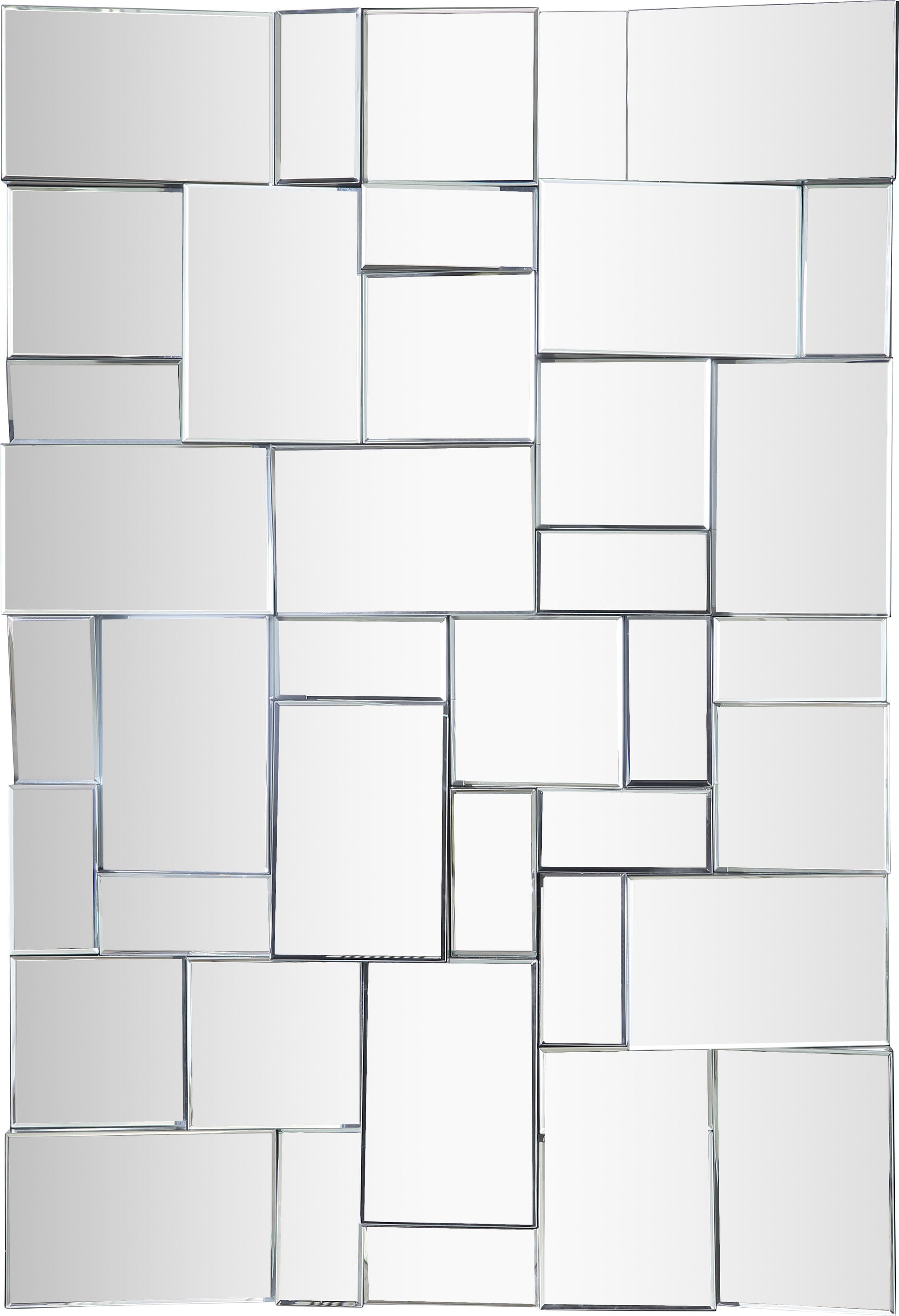 Get ready for instant drama when you hang this Action mirror from Meridian Furniture. This eye-grabbing mirror offers an oversized design that makes an instant visual impact on your wall, no matter where you hang itfrom the foyer to the living room, bedroom, and beyond. Display this contemporary mirror anywhere you want to bring more excitement with its staggered geometric shapes and fun design.