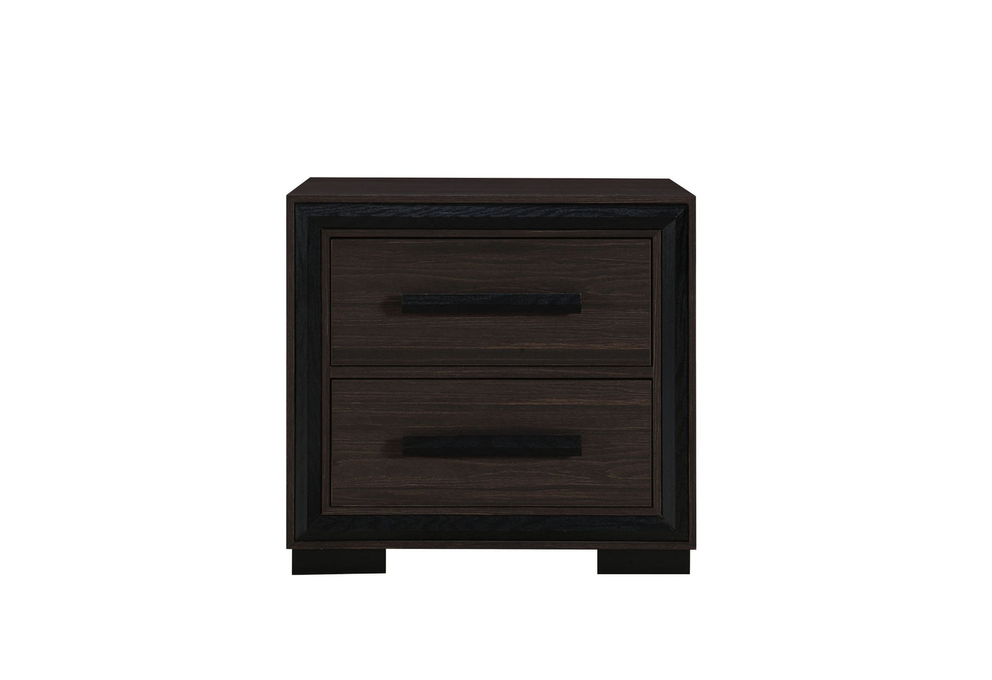 Complete your bedroom set with the Amelia Nightstand by Global Furniture USA, an ideal companion to the bed in this collection. Its compact design is perfect for keeping essentials within reach. The rich brown finish and black accent trim echo the contemporary aesthetic of the Amelia collection, while the sleek black drawer pulls add a touch of elegance. With ample space on top for a lamp or your current read, and drawers to store away small items, this nightstand is both convenient and stylish.
