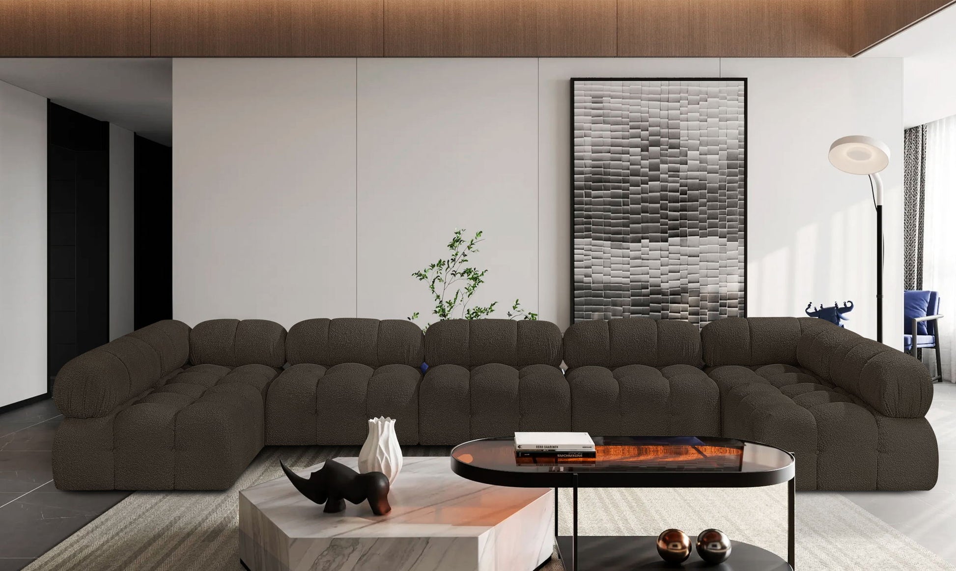 Ames - 7 Piece Boucle Fabric Modular Sectional