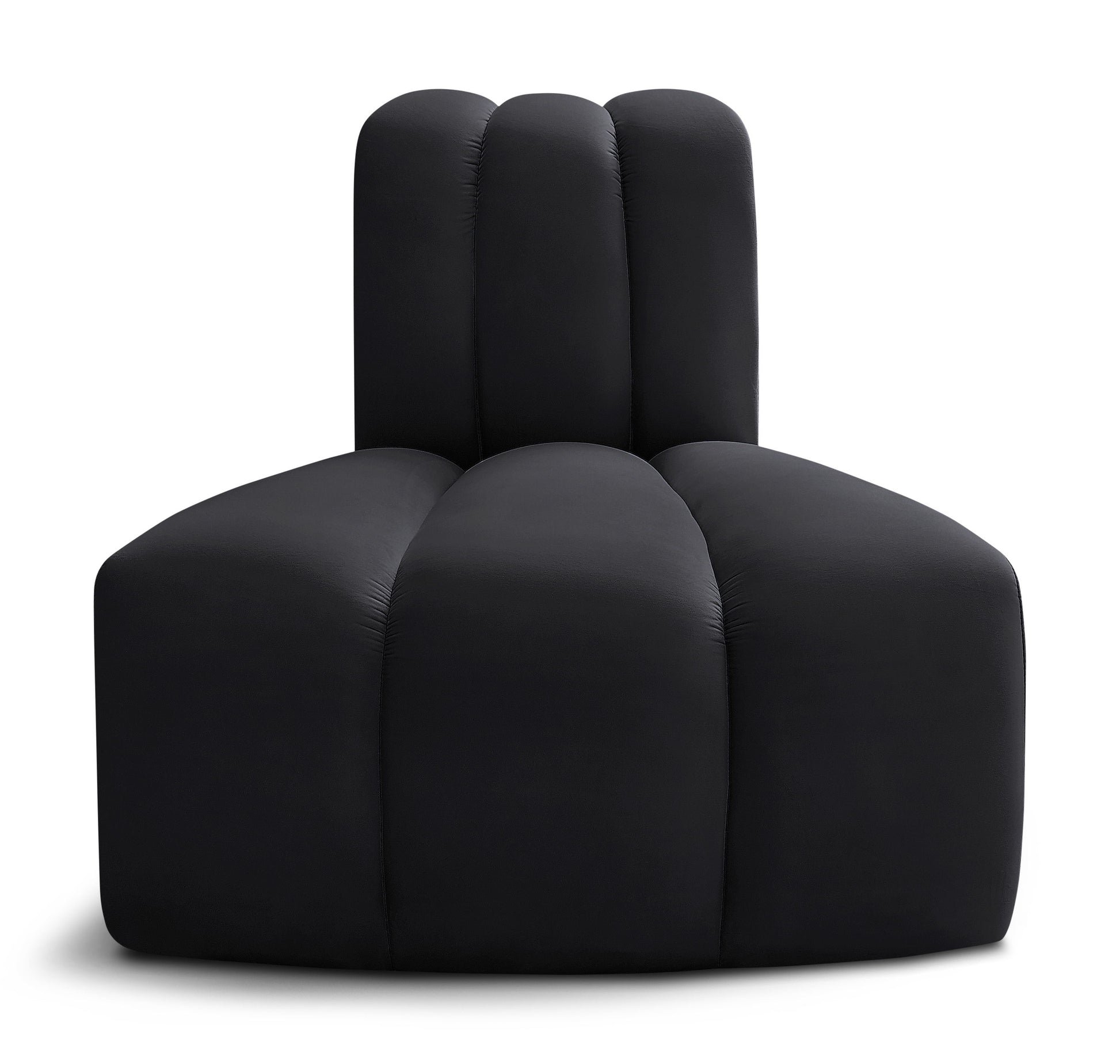 Give your living room or den the perfect blend of style and versatility with this Arc velvet fabric curved reverse corner chair. Part of the Arc modular furniture collection, this chair comes upholstered in rich velvet fabric and features deep channel tufting that adds a touch of luxury while enhancing comfort and support. A seamless combination of form and function, this chair can be used with other Arc pieces to create a myriad of configurations in your well-curated room.