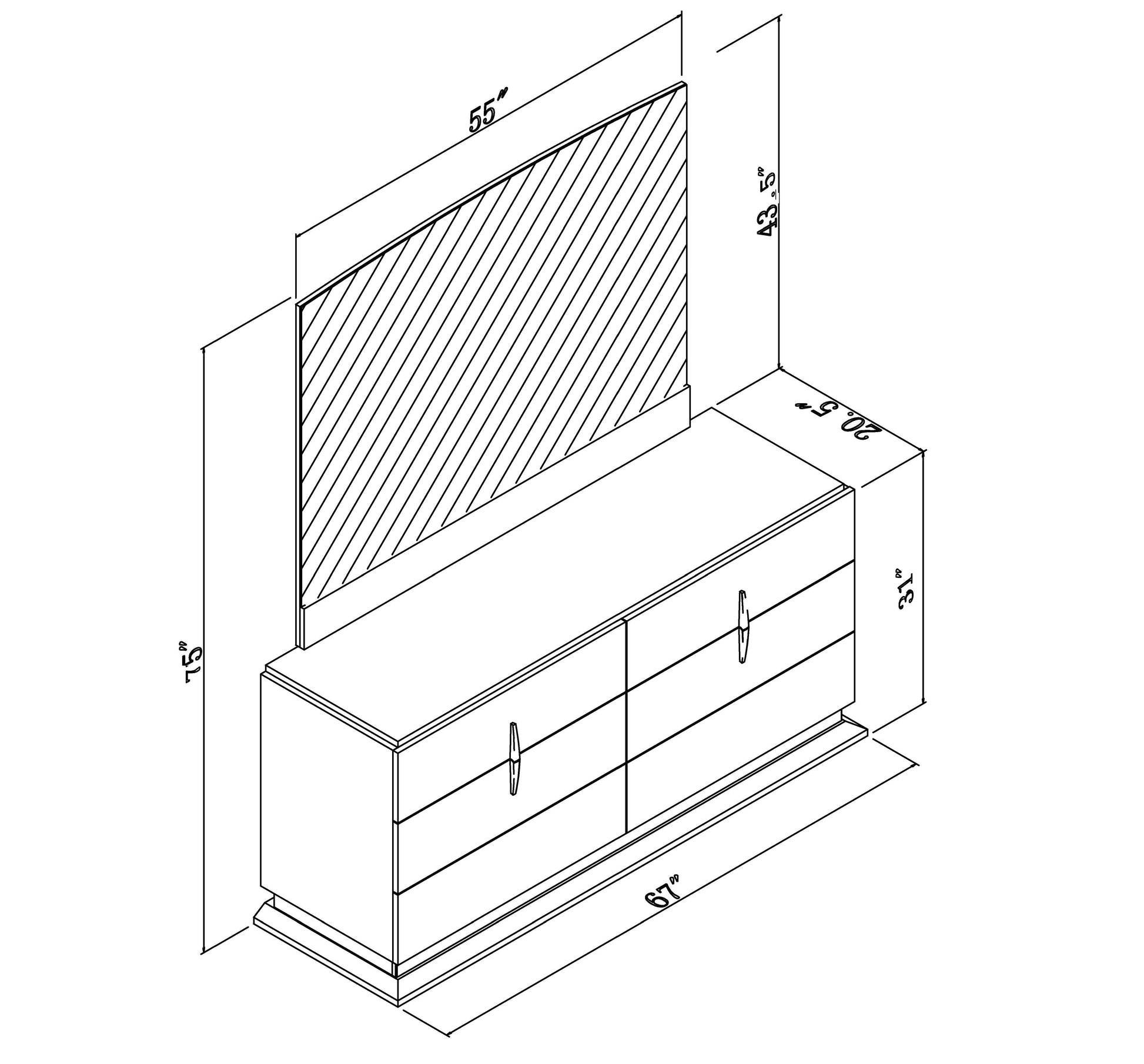 This dresser is a lovely addition to a modern bedroom that is full of stylish and practical features. The high gloss finish creates a geometric pattern to make this a gorgeous focal point. With ample space in the drawers, storing and organizing belongings has never been easier. Thanks to the use of only the best materials, this dresser is sustainable for the long haul. Designed in Italy to ensure quality, the dresser is part of the luxurious Costanza collection that all come together to form a cohesive look. It comes in a single-tone version, with six drawers.