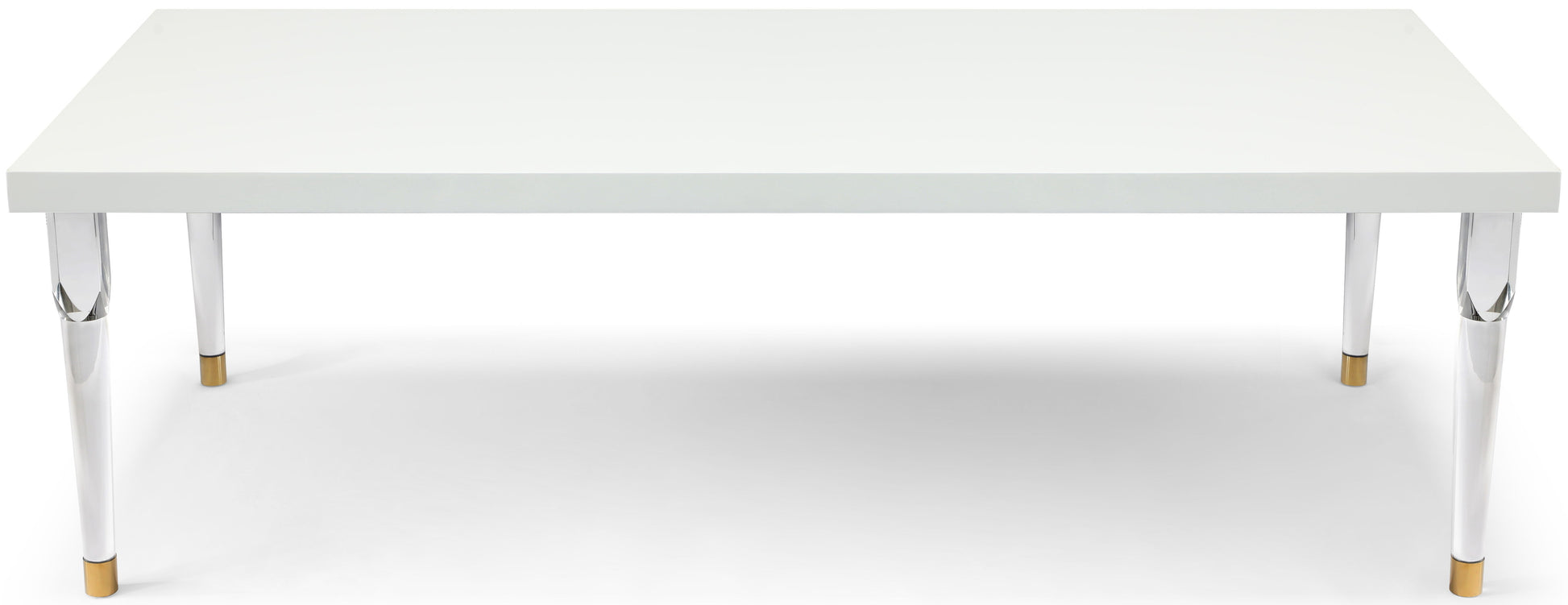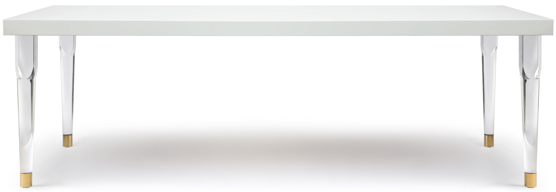 Add an alluring touch to your dining area with the Bethany dining table. This lacquer dining table features a high gloss finish, giving it a clean, elegant appearance just perfect for the minimalist or contemporary home. Crafted from a combination of wood and acrylic, this beautiful table is just the thing to bring a fresh new look to your dining area. Its clear, acrylic legs complement its white tabletop, making it the ideal piece for any dining area.