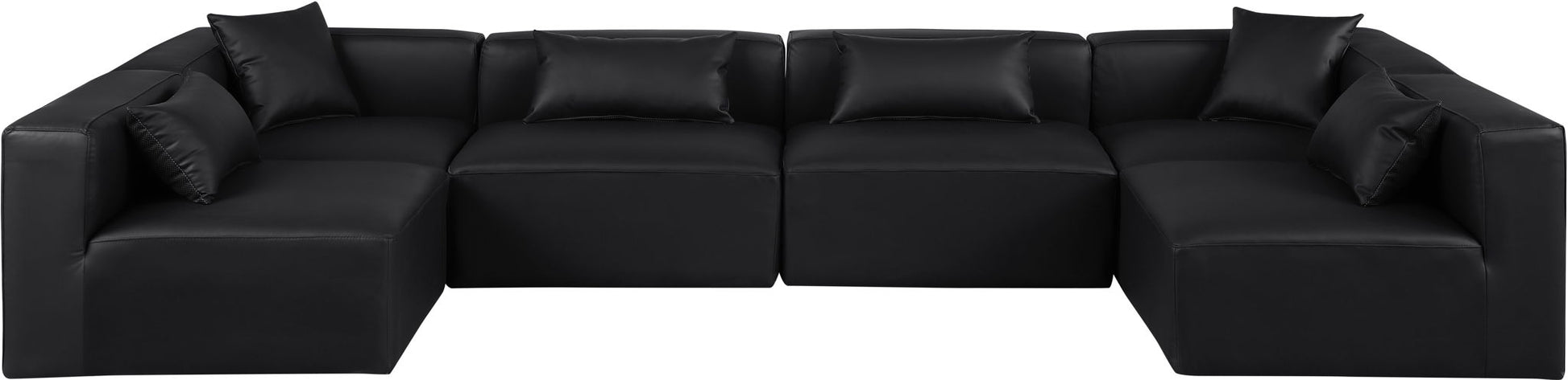 Elevate your space with the luxurious Cube Vegan Leather Modular Sectional. This modular sectional exudes modern elegance, charm, and comfort making it a perfect addition to any contemporary living space. Its clean lines and cube shape are reminiscent of minimalist design, while the plush vegan leather upholstery adds a touch of luxury and sophistication. The chair's versatile construction and geometric aesthetic seamlessly integrate into various design styles, from sleek living rooms to chic home offices, embodying the essence of modern design and creating a sense of order and tranquility in your space.