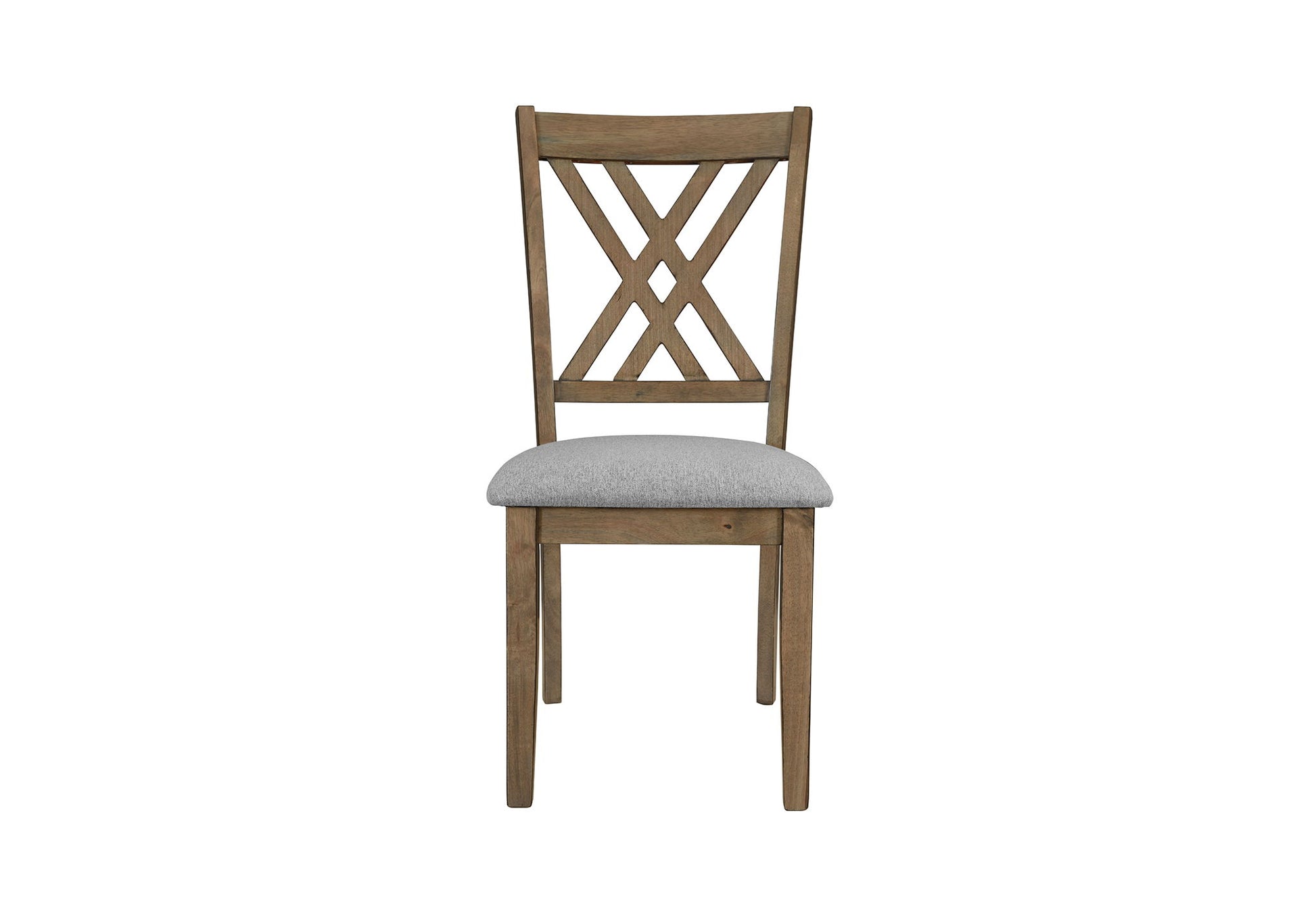 Accompanying the table are matching dining chairs and a bench upholstered in soft grey fabric, providing comfortable seating with a modern, understated look. The harmonious combination of warm brown tones and cool grey upholstery creates a balanced and inviting atmosphere, perfect for everyday meals or special occasions. The D2974 Collection offers versatile style, functional design, and quality materials for a sophisticated dining experience.