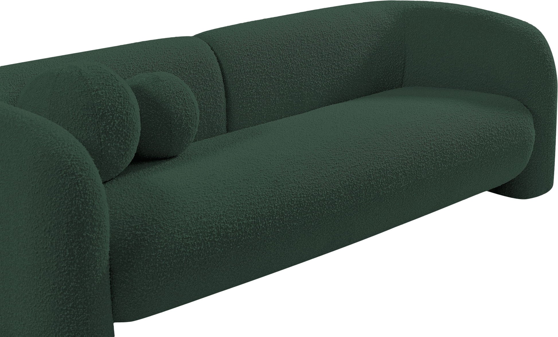 The Emory Sofa draped in the rich boucle fabric is a sight to behold. Its captivating elegance is matched only by its comfort, making it the epitome of style and relaxation. The texture of the fabric adds depth and dimension to the sofa, making it a stunning addition to any room. With its sleek design and cozy feel, the Emory Sofa is the perfect place to unwind and indulge in a moment of pure luxury.