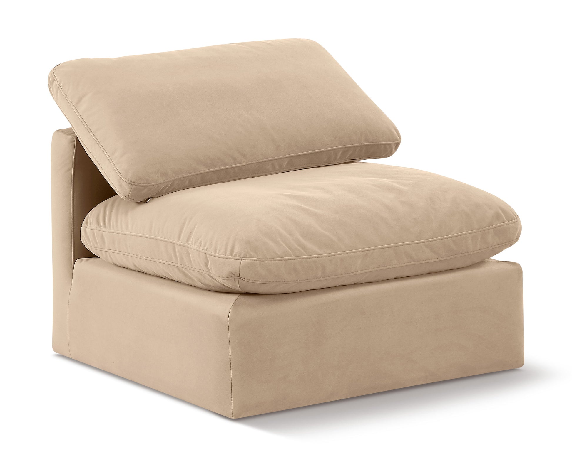 Experience ultimate comfort and style with our velvet Indulge Armless Chair. The luxurious velvet will elevate the aesthetic of any room. This chair provides ample space for you to relax while its modular build offers the option of unlimited configurations. Whether you're looking to add a stylish element to your living room or a comfortable seating option to your bedroom, this chair is the perfect choice.