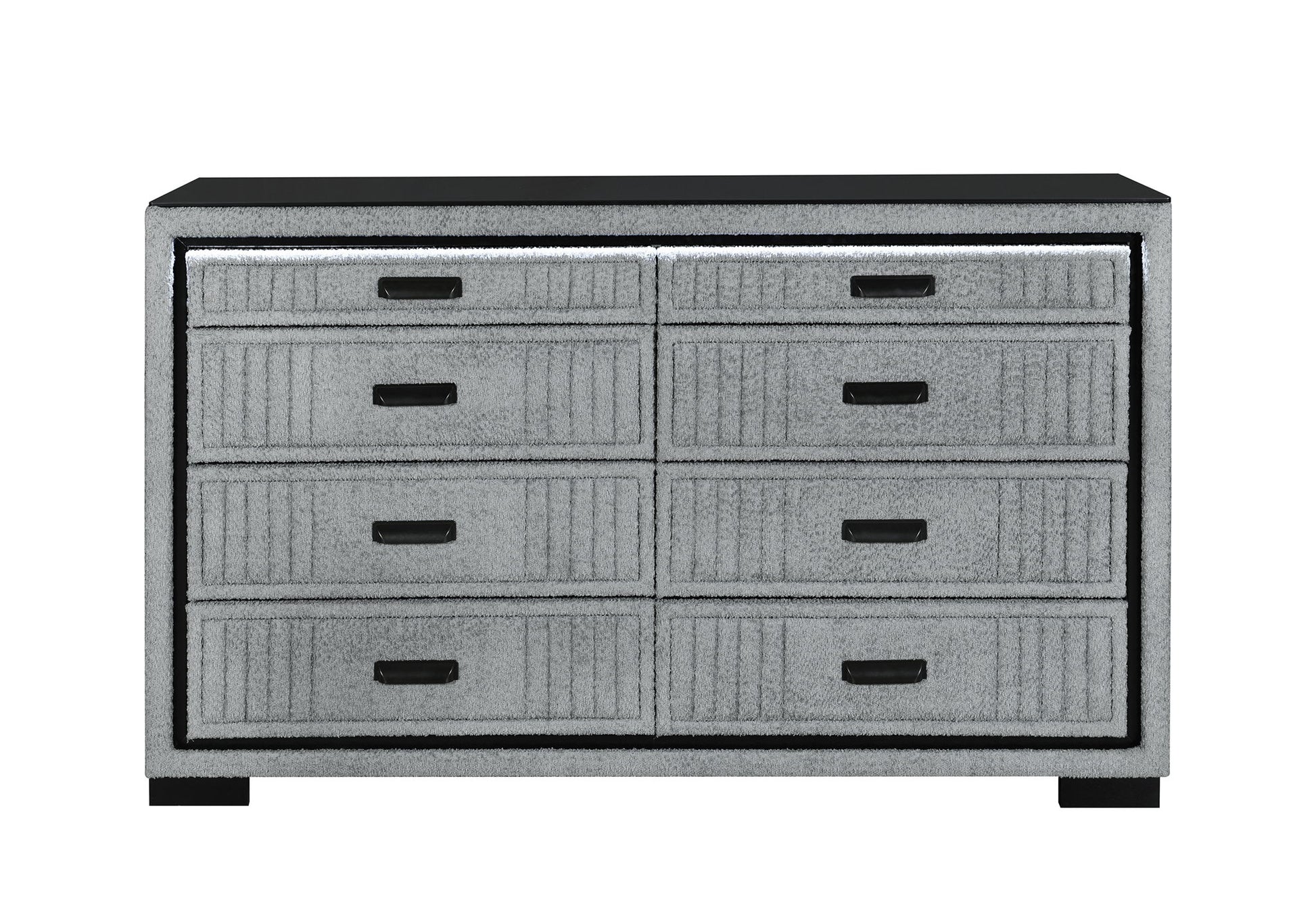 Wrapped in gray upholstery with fluted drawer fronts for a soft yet structured look, the Isabella Dresser features LED lighting to create a serene, modern glow. Spacious drawers offer practical storage, while the luxe finish and contemporary details make it a standout in any bedroom.