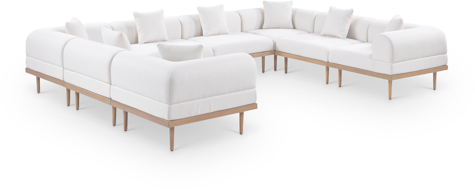Laguna - 8 Piece Resilient Water Resistant Fabric 142" Upholstered Outdoor Patio Modular Sectional - Cream