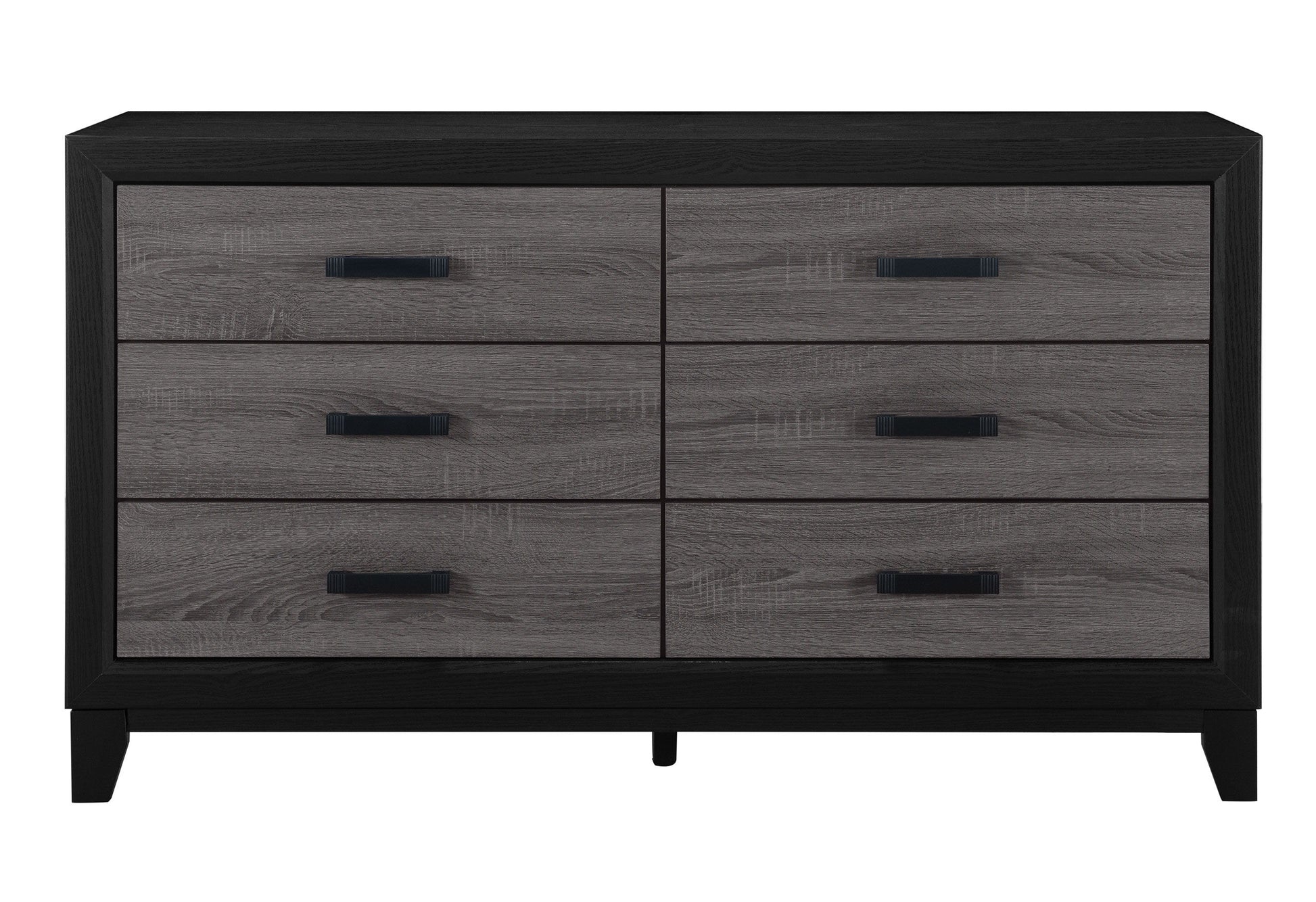 With its urban farmhouse design, the best of farmhouse and urban living combine to create an upscaled farmhouse appearance. The case pieces are black with rustic grey wood inlay. In addition to the two-tone design, the metal hardware completes the mixed media look and adds a modern flair.