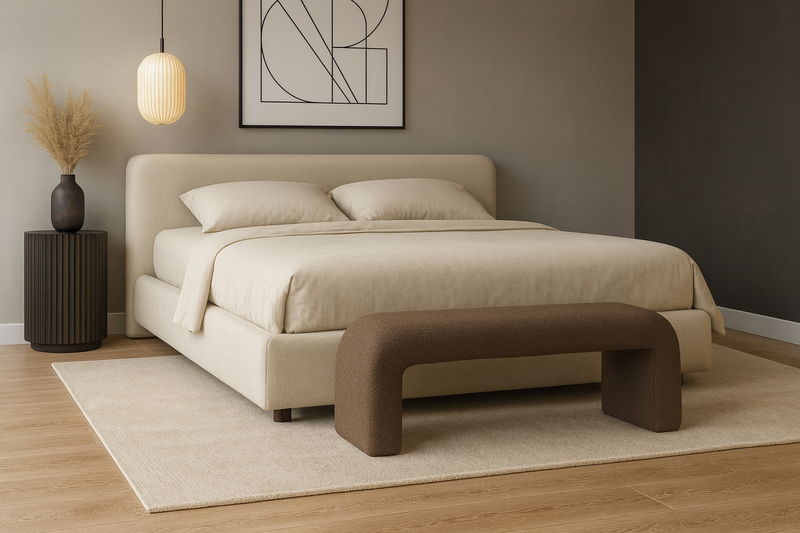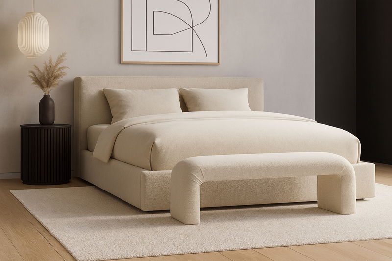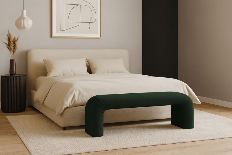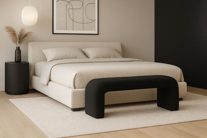 Amp up your modern space while enjoying an additional seat where it's needed with this elegantly crafted Niagara boucle fabric bench. Soft, sumptuous boucle fabric covers this unusually shaped and eye-grabbing bench, giving a soft feel to the touch and adding to its comfort factor. This contemporary bench is perfect for positioning at the end of your bed for a look that wows, or use it in the entryway for a handy and convenient spot to sit while pulling on boots or taking off your shoes.