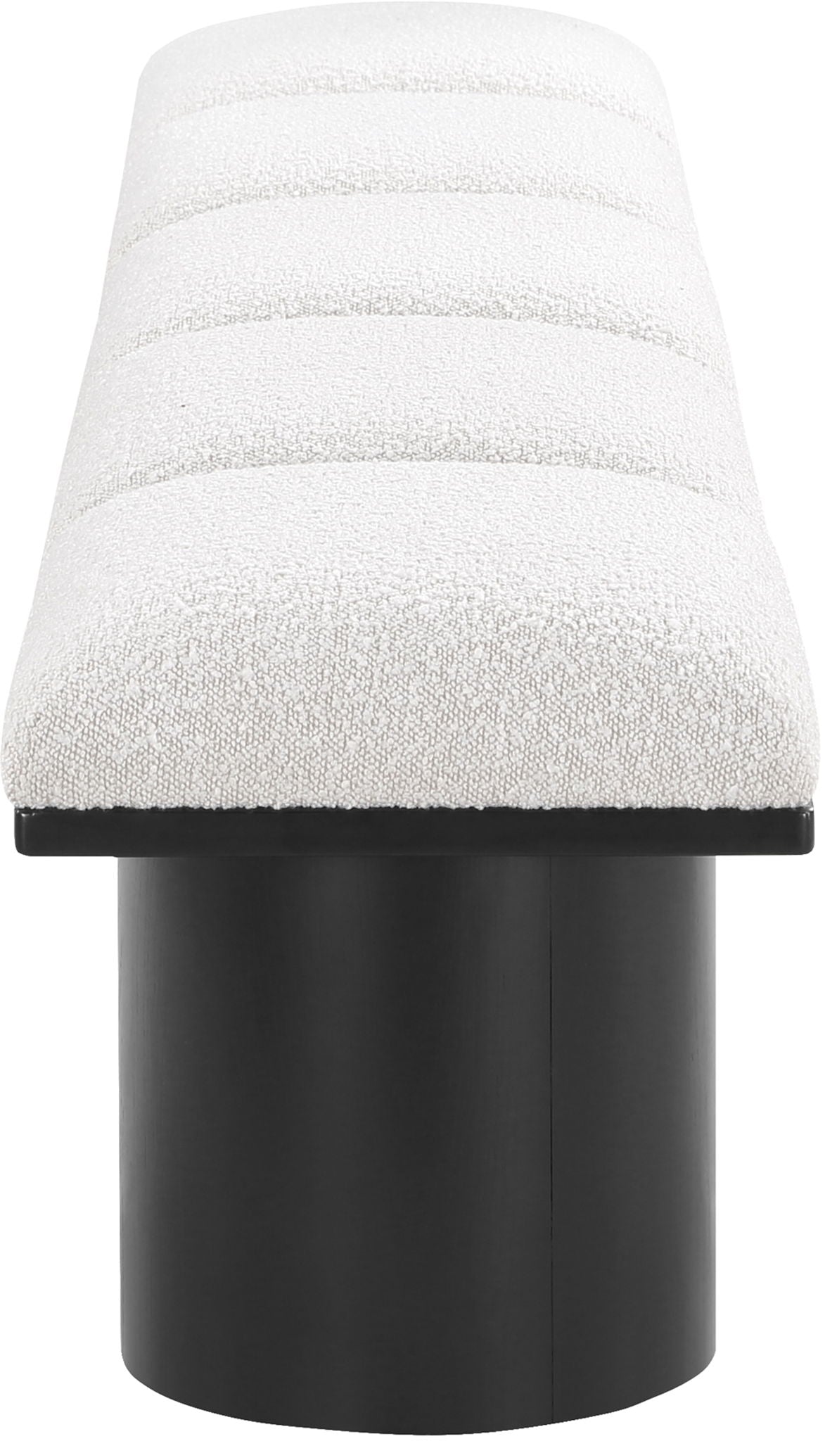 Bring valuable seating and remarkable style to your space with this Pavilion Boucle Fabric Bench, an exquisite balance of style and usability for the entryway, bedroom, and beyond. Crafted from oak veneer with a black finish, this bench has a 4-inch-thick seat cushion that's channel-tufted for a touch of luxury. The bench's columnar bases add a dash of Art Deco design, making it a captivating focal point in any room.