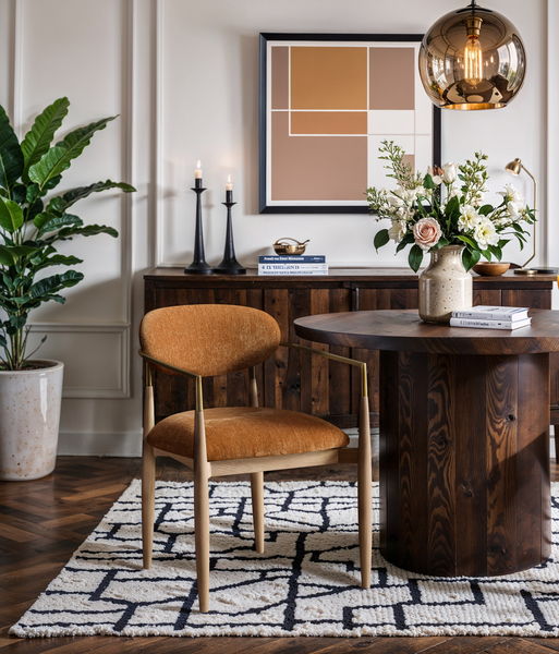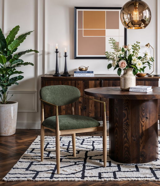 Riccio - Fabric Dining Arm Chair - Natural Frame