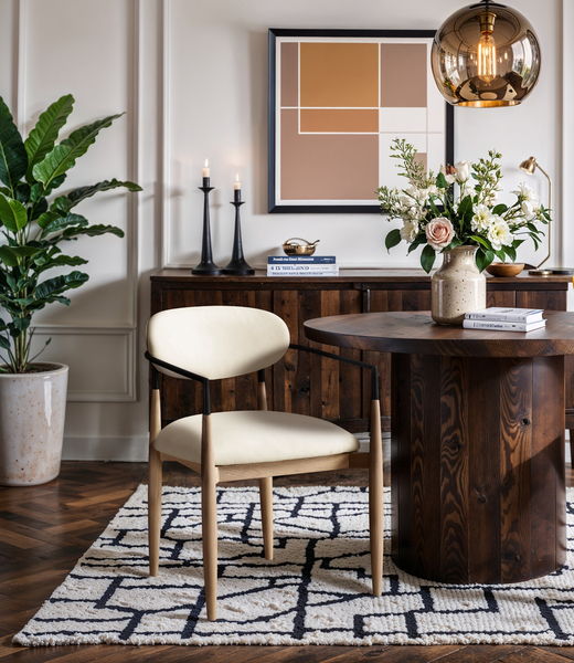 Riccio - Upholstered Dining Arm Chair (Set of 2) With Light Brown Legs - Cream
