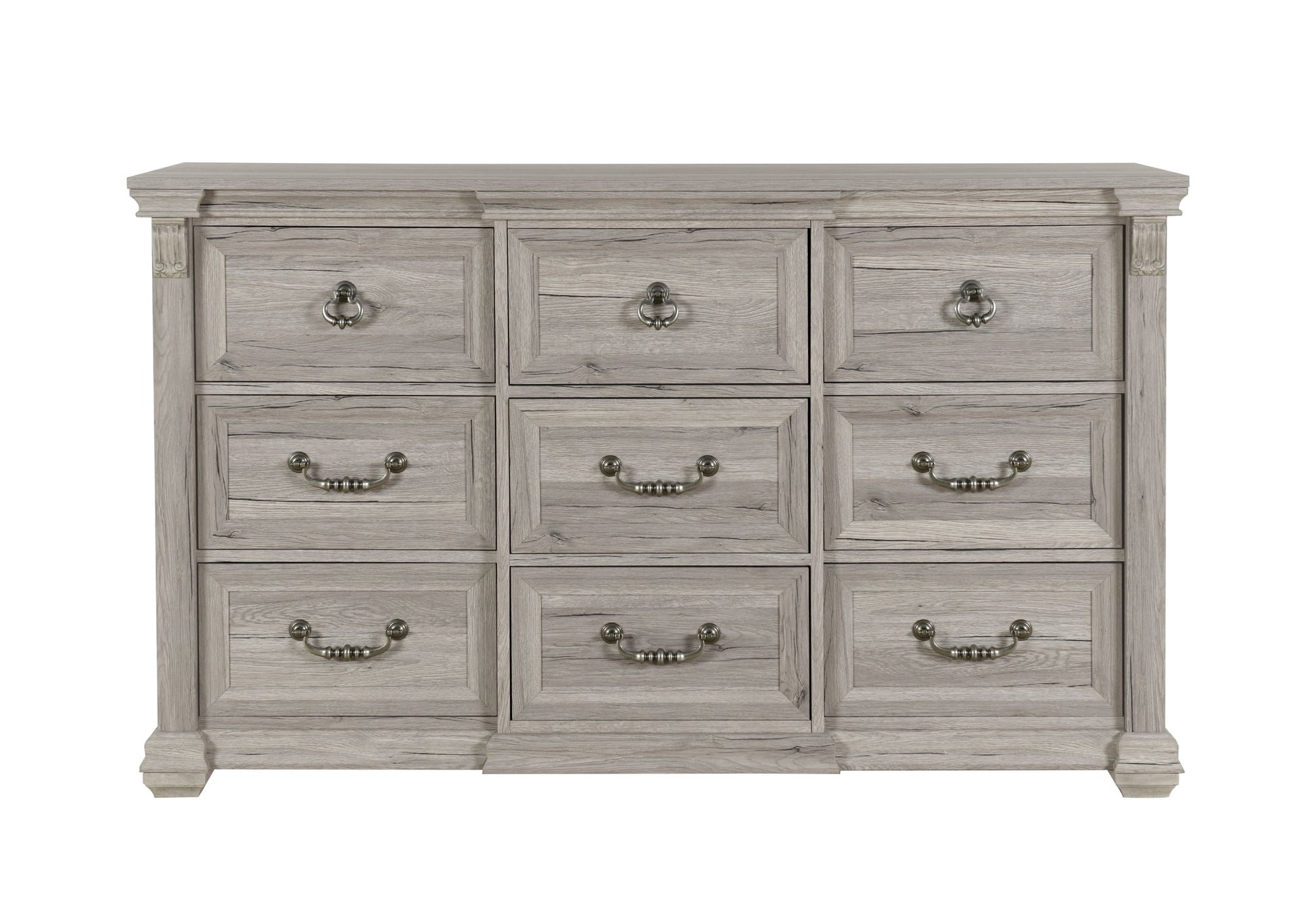 Organize your clothing and accessories in style with the Rowan/Tatum Dresser. The rustic wood finish, intricate trim, and scroll work combine to create a stunning piece that enhances the beauty of your bedroom.