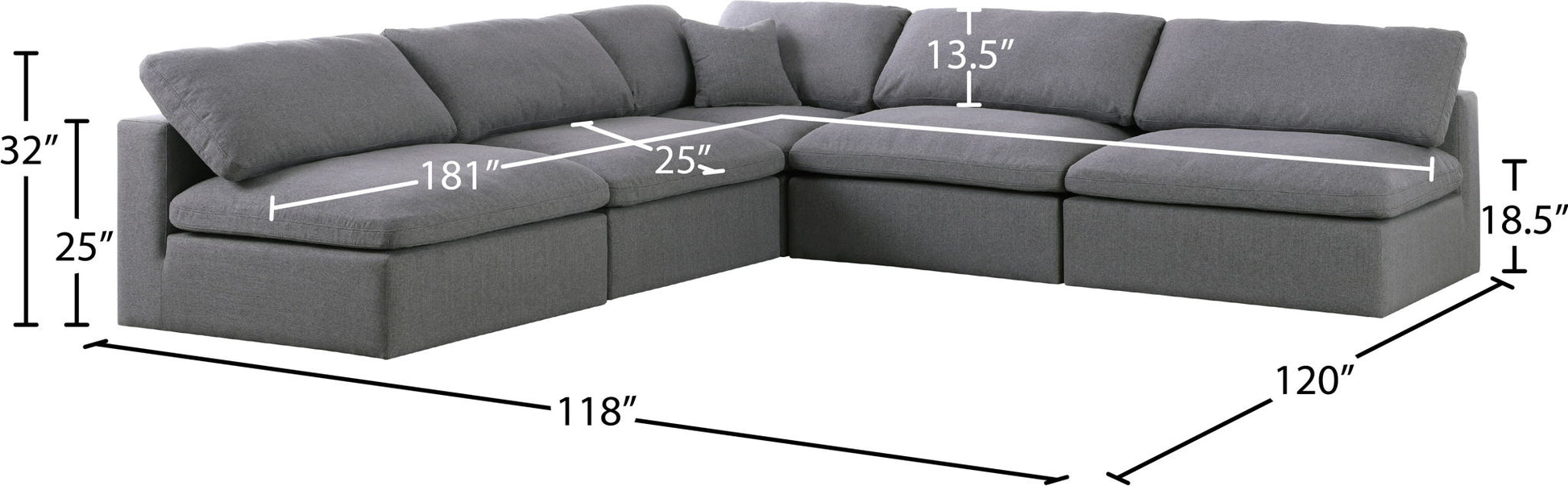 Serene - 5 Piece Modular Sectional - Gray
