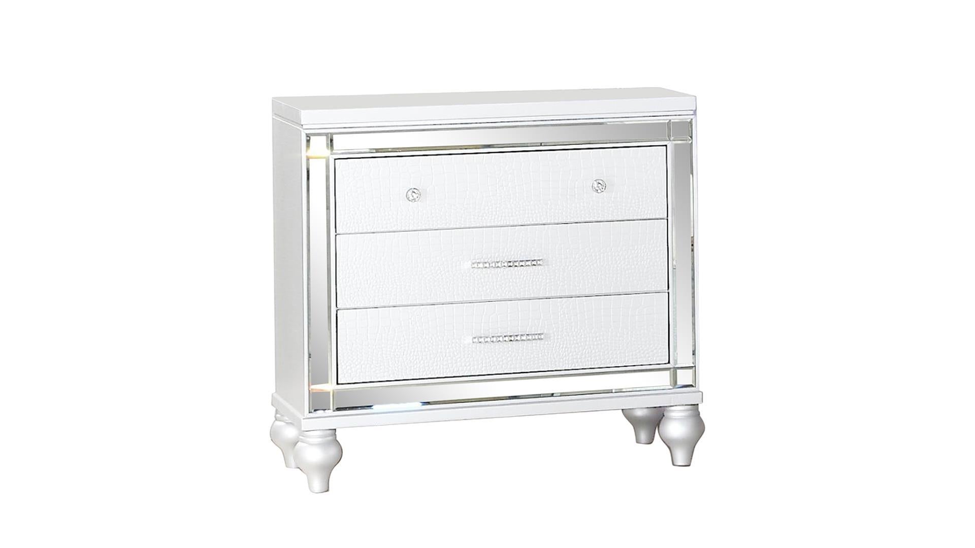 Each case piece is highlighted with a Mirror accent inserted in the frame. Matching Nightstand and other bedroom set pieces complete the entire look to your taste. The Mirror includes an LED light that will accommodate you whether you're taking a picture or getting ready daily. Add glam to any bedroom with this top-selling design. Indulge in the exquisite details while awake and in restful sleep at the end of each day.