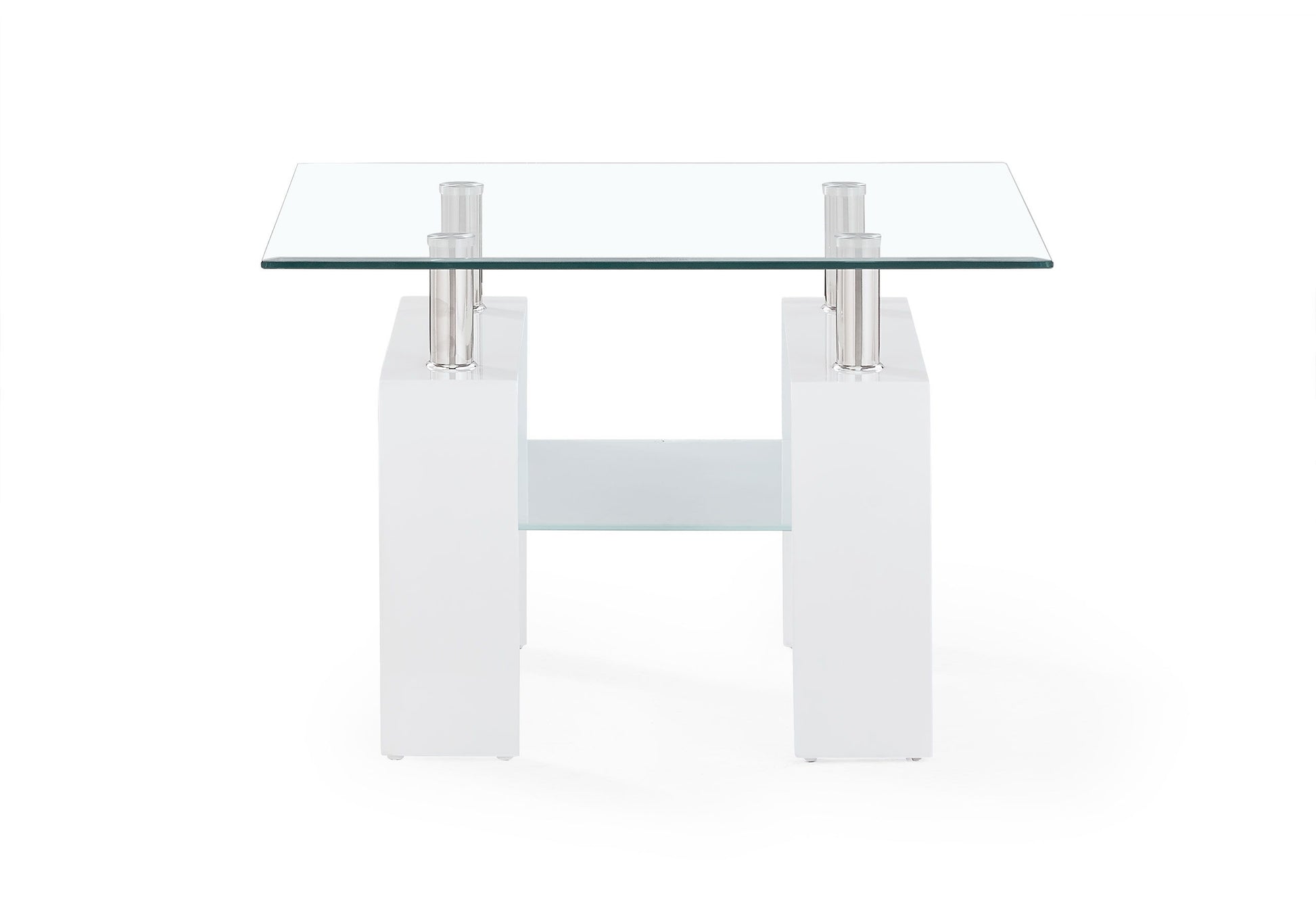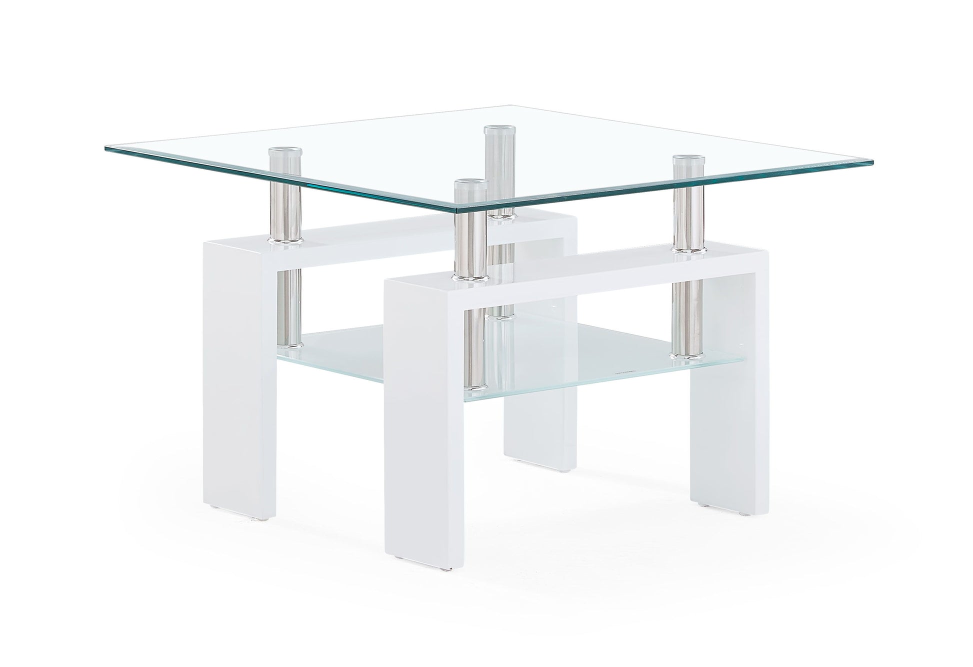 Featuring a clear tempered glass table top and white finish legs, this table looks amazing. Contemporary in style and versatile enough for many room settings, this piece is simply a must have for your living space.