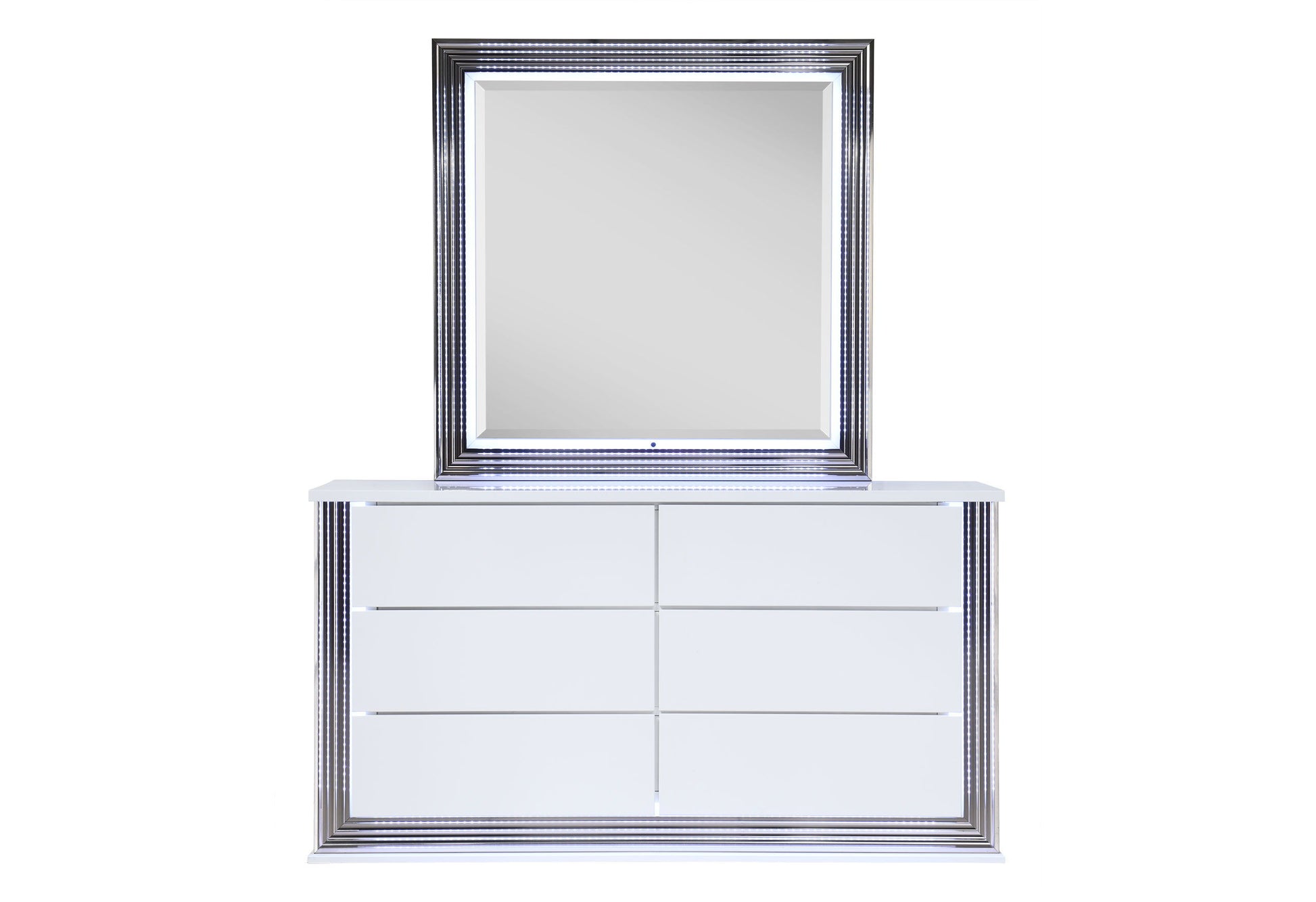 Introducing the Ylime Collection by Global Furniture USA - a stunning addition to any bedroom. Crafted with a sleek, deco modern design, this collection features rich chrome accents on all pieces and LED accent lighting. The real showstopper is the LED accents that add a touch of luxury and sophistication to the overall look. An available large matching vanity with stool makes this one of the most accommodating, complete solutions for your bedroom.