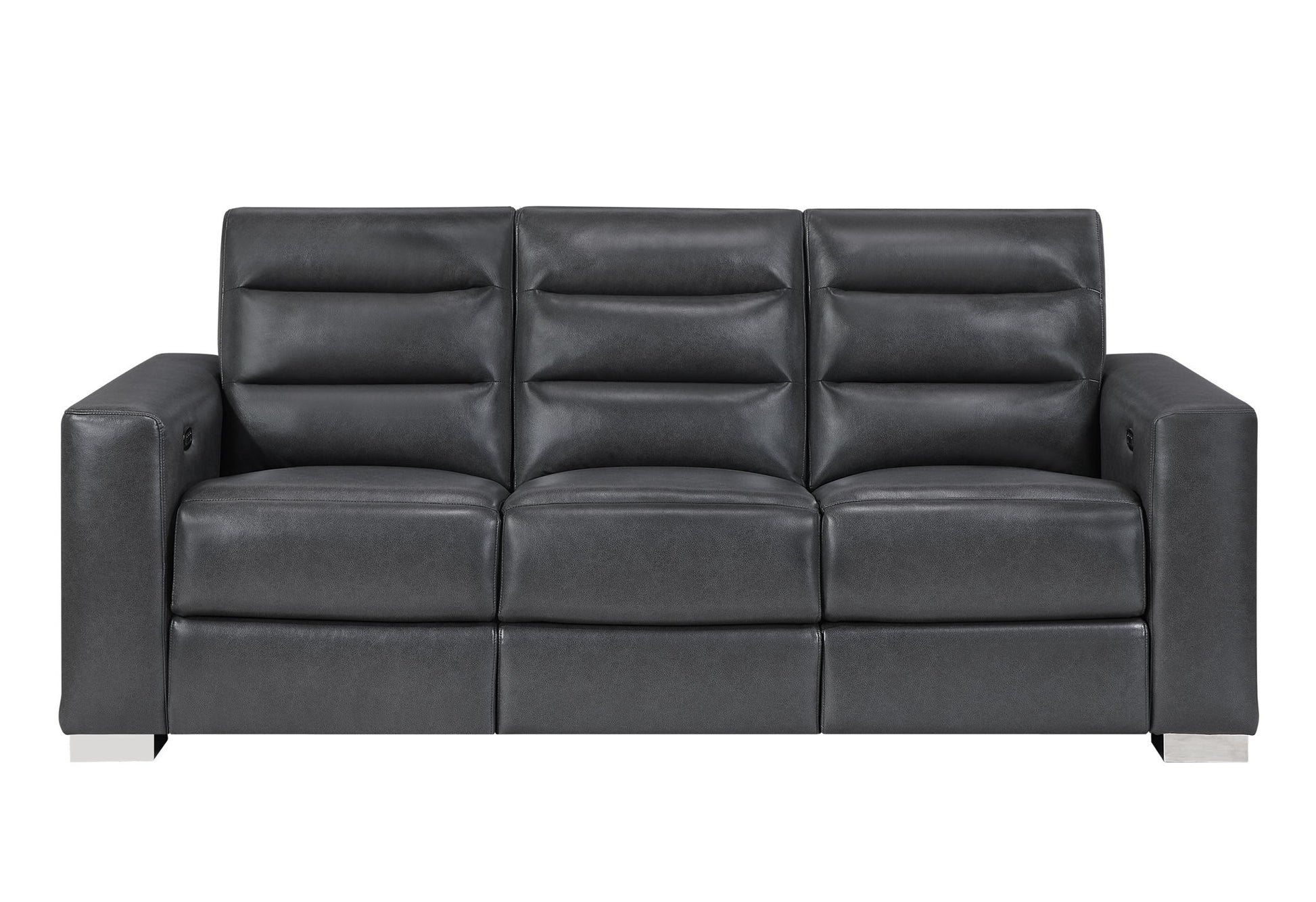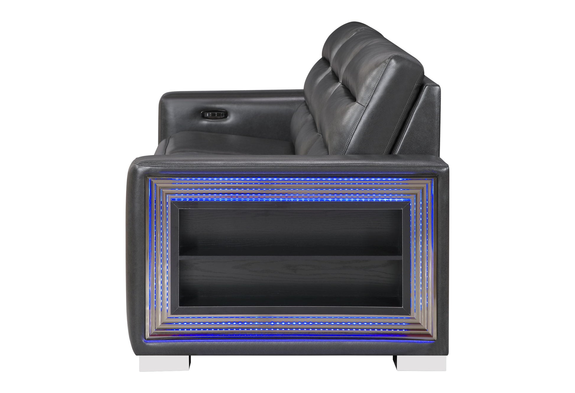 The Ylime Power Reclining Sofa delivers elevated comfort and sleek design in perfect harmony. Finished in a sophisticated charcoal PU, this sofa features power-reclining seats that let you find your ideal position at the touch of a button. The bookcase-style LED-illuminated arms provide soft ambient lighting and convenient shelving, combining style with utility. Plush cushioning and refined tailoring complete the look, offering a contemporary aesthetic that's as comfortable as it is captivating. Perfect for movie nights or elegant gatherings, the Ylime Sofa transforms any space into a haven of modern luxury.